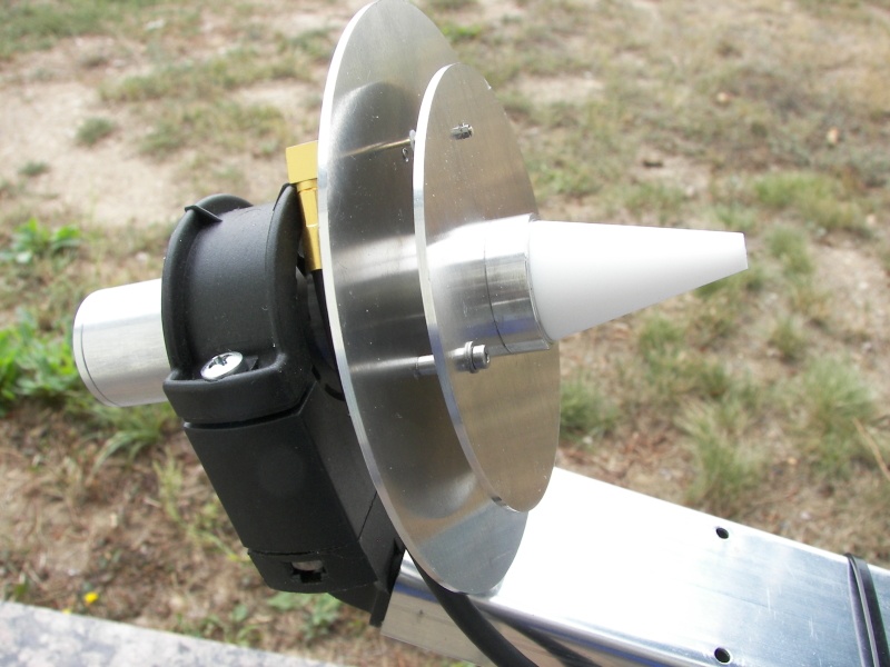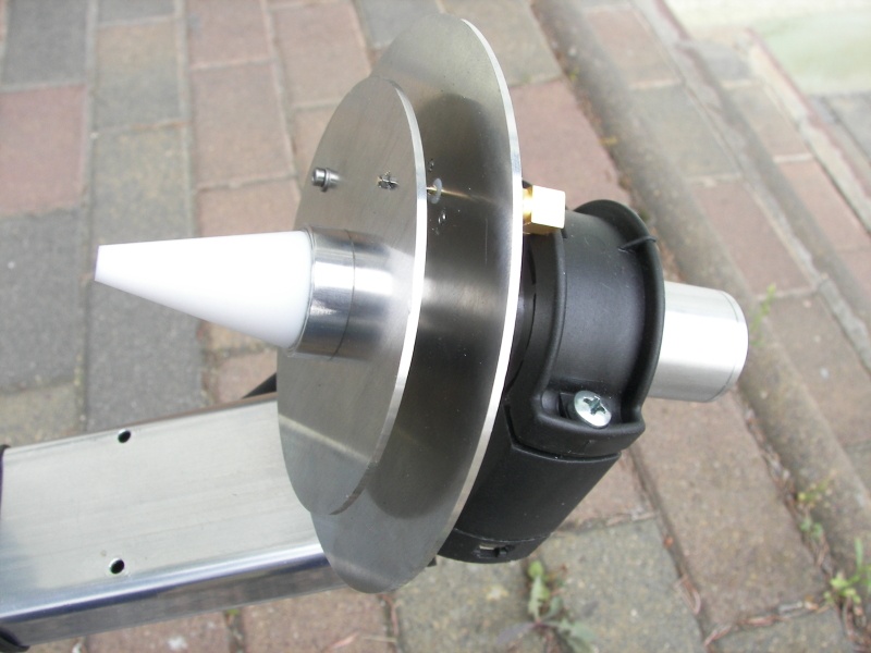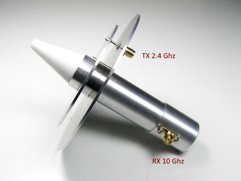 This V2 version of DJ7GP's 2.4 / 10 Ghz dualband feed antenna is ready for use in RX and TX LHCP Circular Polarized for 2400 MHz and 10500 MHz reception for Oscar-100 satellite via LNB head climb.