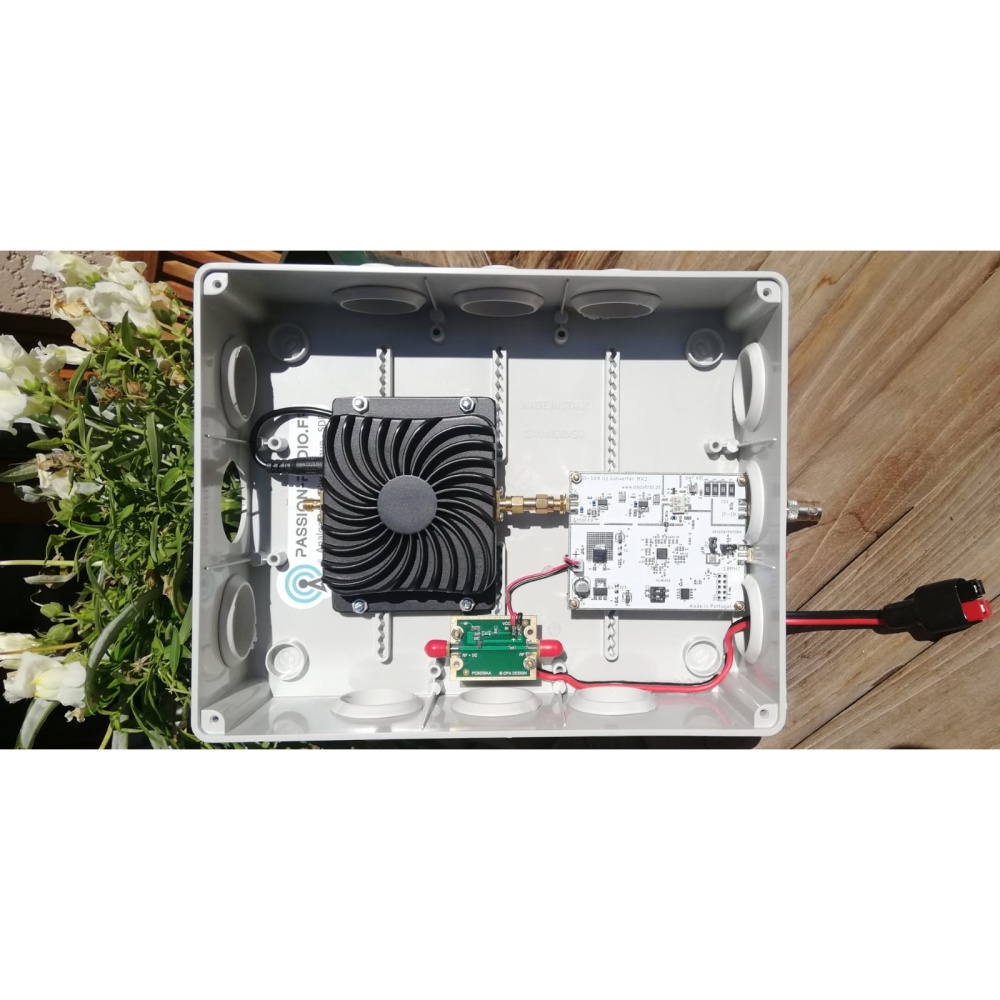 The SG LABS 13cm v1.4 transverter for QO-100, allows transmitting from a 432 MHz UHF SSB station to 2400 MHz (13cm) on the uplink channel of the QO-100 satellite with a maximum output power of 2W.