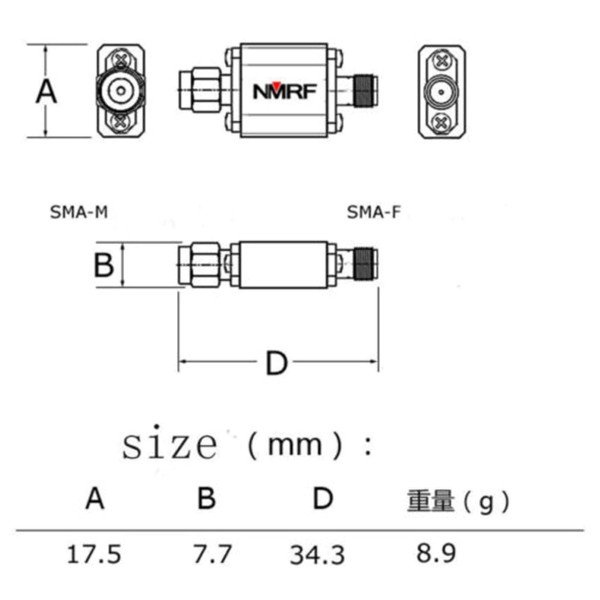 This RF adapter converts a femaleRP-SMA connector to a male SMA connector. Please note that this adapter is a Reverse SMA, mainly used for WIFI applications.