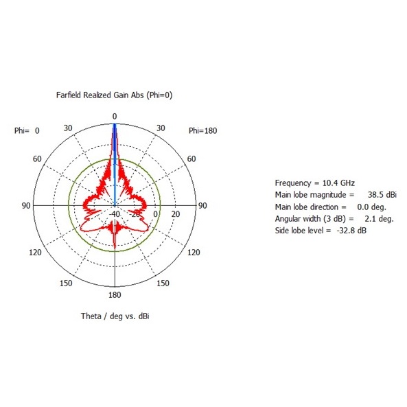 Effective gain: 10.57dBi (theoretical 38.5dBi)