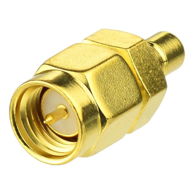 This RF adapter converts an MCX Male connector to an SMA Female connector. For example, to connect a DTT / SDR R820T2 key to an aerial with an SMA male connector.