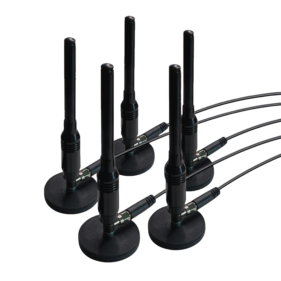 Pack of 5 VHF-UHF magnetic antennas included, with 2m SMA male cable.