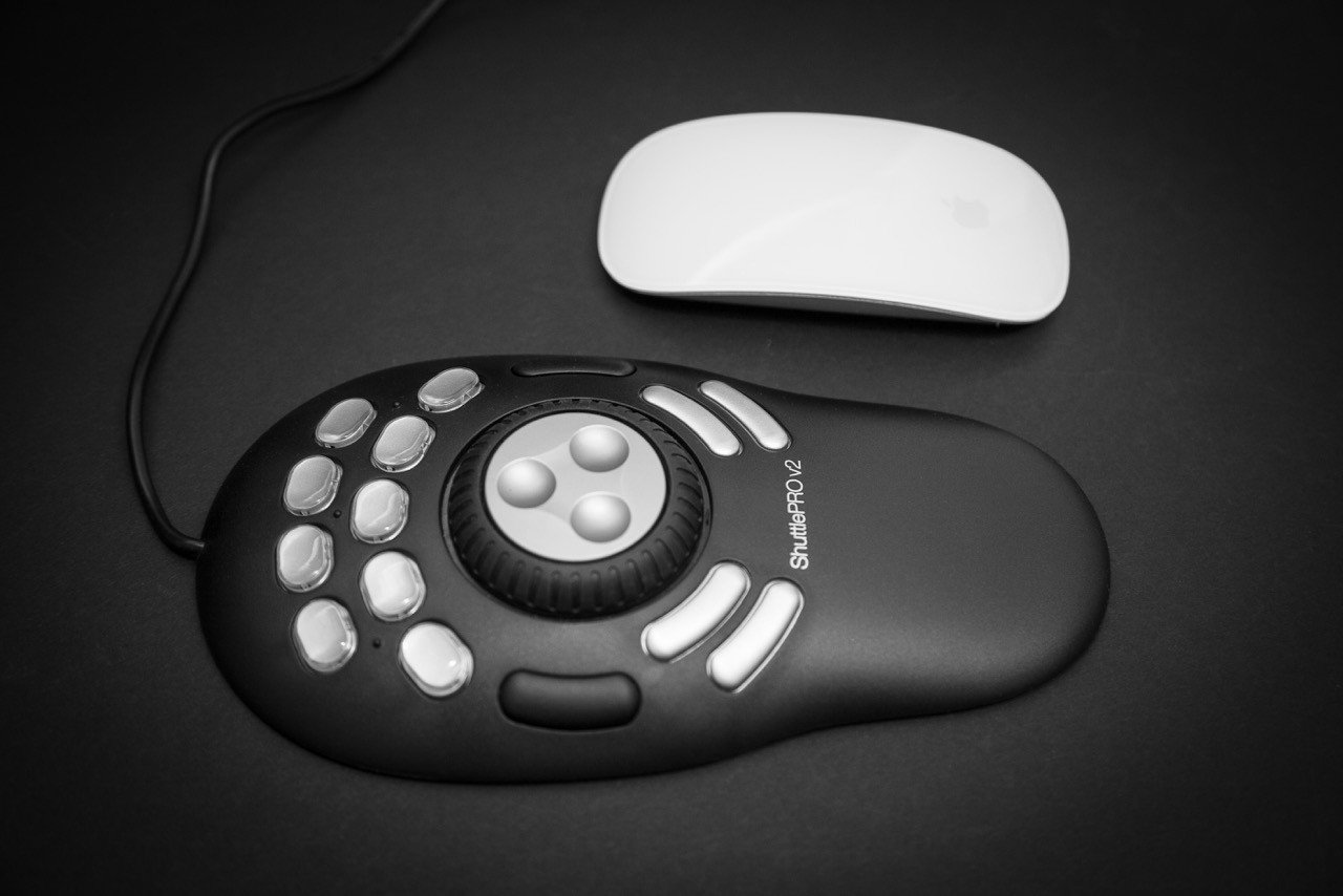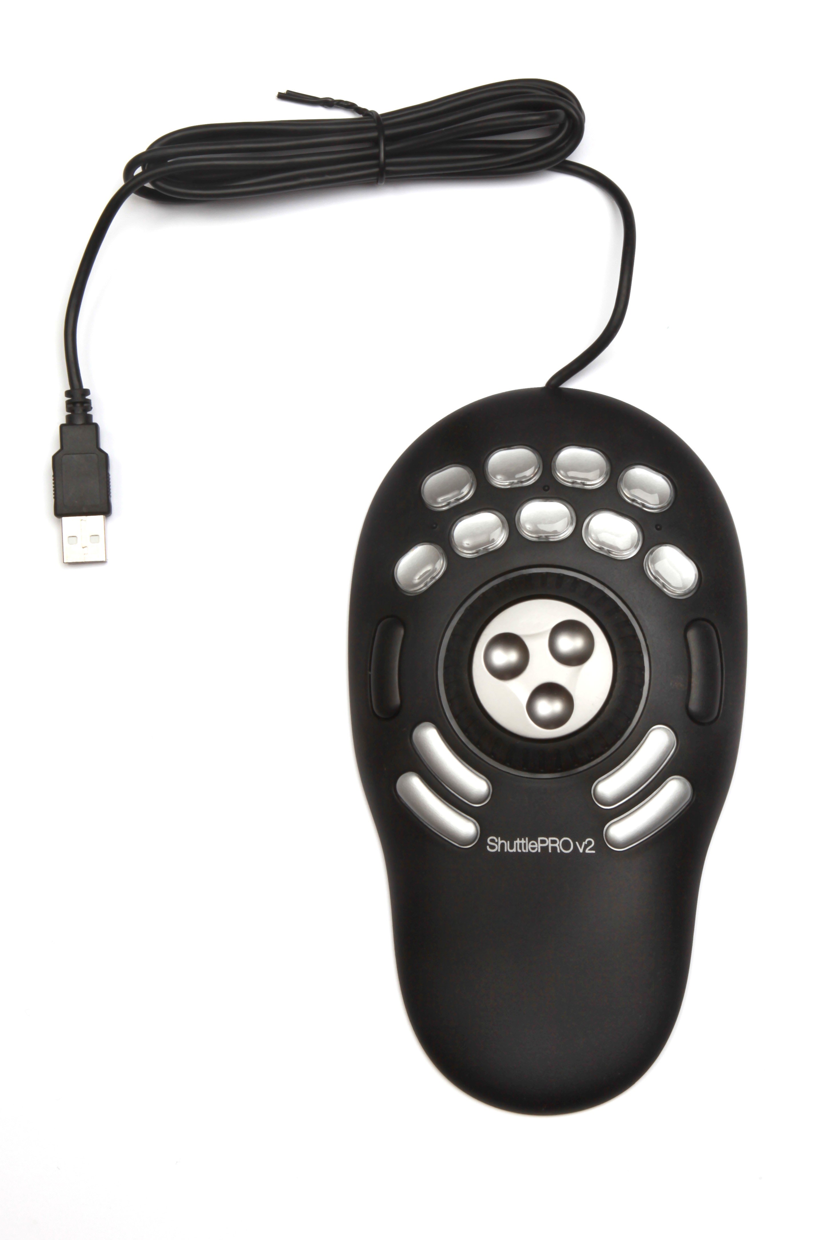 The Shuttle PRO V2 includes 15 programmable buttons (by software), a central jog dial rubber and a rotating wheel in the center. It installs and behaves like a USB mouse.