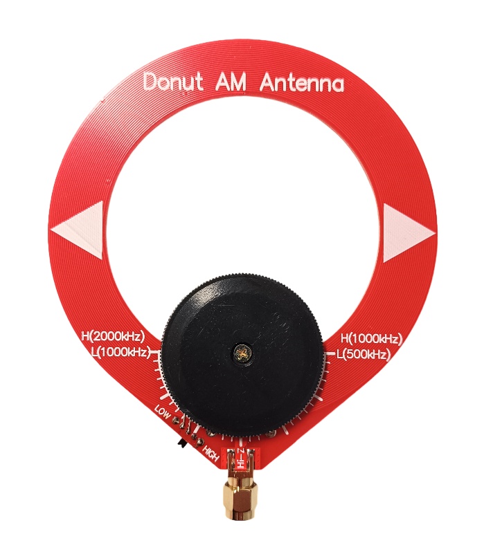TheAM loop-donut antenna covers a frequency range of 500 to 2000 kHz, and is compatible with an SDR receiver, Malachite, Malahit or other receiver for indoor reception. High-impedance (Hi-Z)