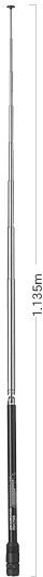 Telescopic wide-band antenna Diamond RH795, to receive from 70 to 1000 MHz. Length:115 cm (full length),19.5cm (retracted) 10 stages Weight: 65g Gain: 2.15dBiMax.power rating: 10W FMImpedance: 50ohms
