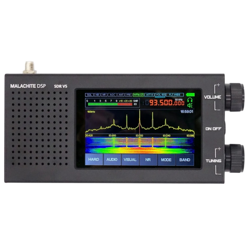 Read the 6 reviewsThe Malachite DSP SDR V5 receiver is a robust radio receiver with an aluminium casing offering a wide frequency coverage range from 10 kHz to 250 MHz and from 400 MHz to 2 GHz.