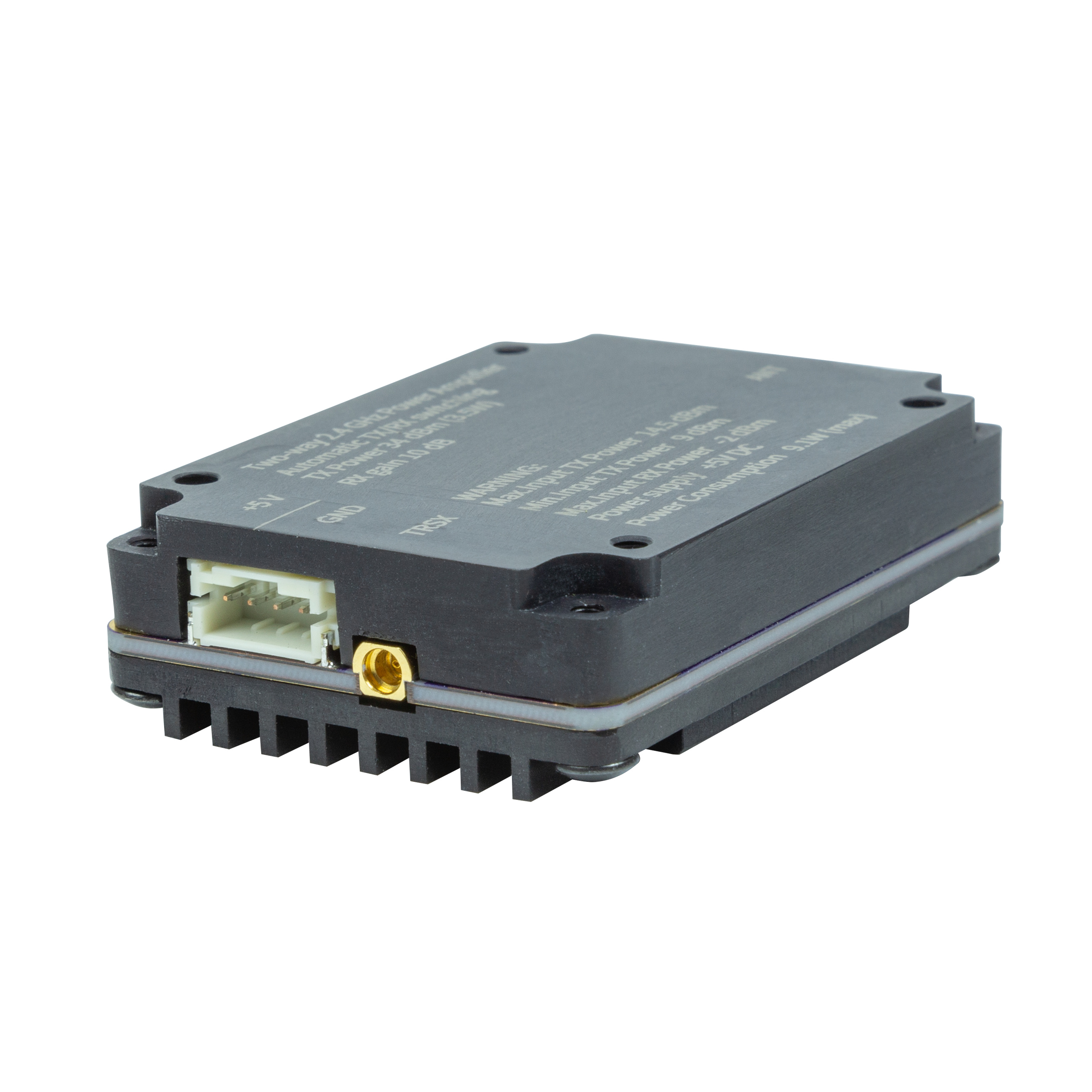 This compact amplifier features automatic switching between transmit (TX) and receive (RX) modes and is equipped with a receive preamp with 10dB gain.
