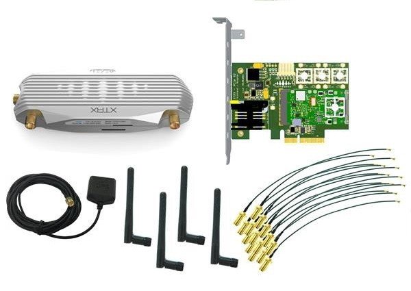 Optional Starter Pack: GPS antennas with cable, aluminum housing, USB adapter 3, PCIe x2 metal adapter, 4 U.FL - U.FL cables and 4 U.FL - SMA cables.