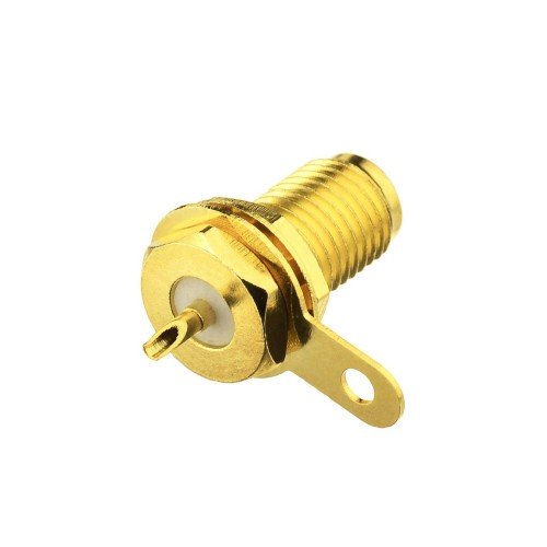 Straight female SMA RF connector, for soldering to PCB. Operating frequency: 0 to 10 GHzGOLD-plated brassImpedance: 50 OhmsDimensions: 13.41 x 6.5 x 6.5 mmThis RF connector is manufactured in