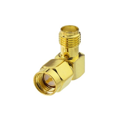 Angled RF adaptor, connector RP-SMA male(inverted SMA male) to RP-SMA female(inverted SMA female). Impedance 50 ohms. WarningThis adapter is a reverse SMA (RP-SMA), mainly used for 2.4Ghz WIFI