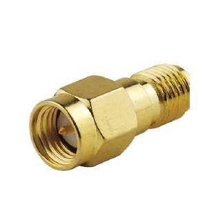 This RF adapter converts an SMA male connector...