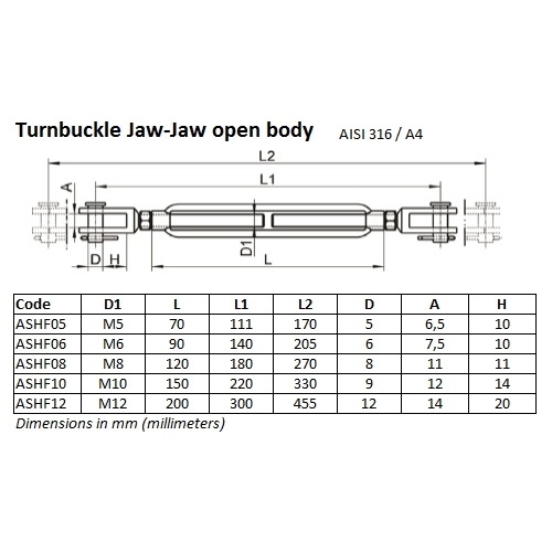 No review at the momentStainless steel turnbuckle for guy ropes, diameter 10 or 12 mm (to be selected below).