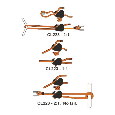 Attached to a rope, the CL223 is quick to tension, easy to adjust and easy to release. Used for tensioning guy wires on antenna masts, wire antennas, tents and canvas structures or boat sails.