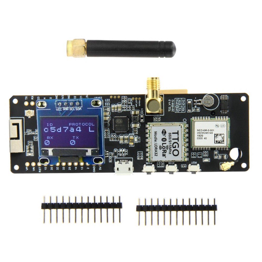 Supplied with: 1 LoRa GPS tracker ESP32 TTGO T-BEAM 1.0, 1 433 or 868 Mhz antenna, 2 headers (soldered), 1 OLED screen (soldered). Battery and micro-USB cable not included.
