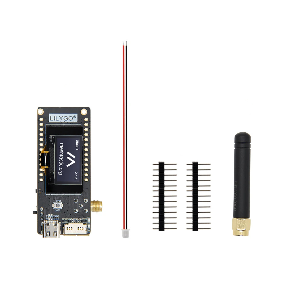 Supplied with: 1 TTGO T3S3 V1.2, 1 USB-C cable, 1 868MHz antenna.