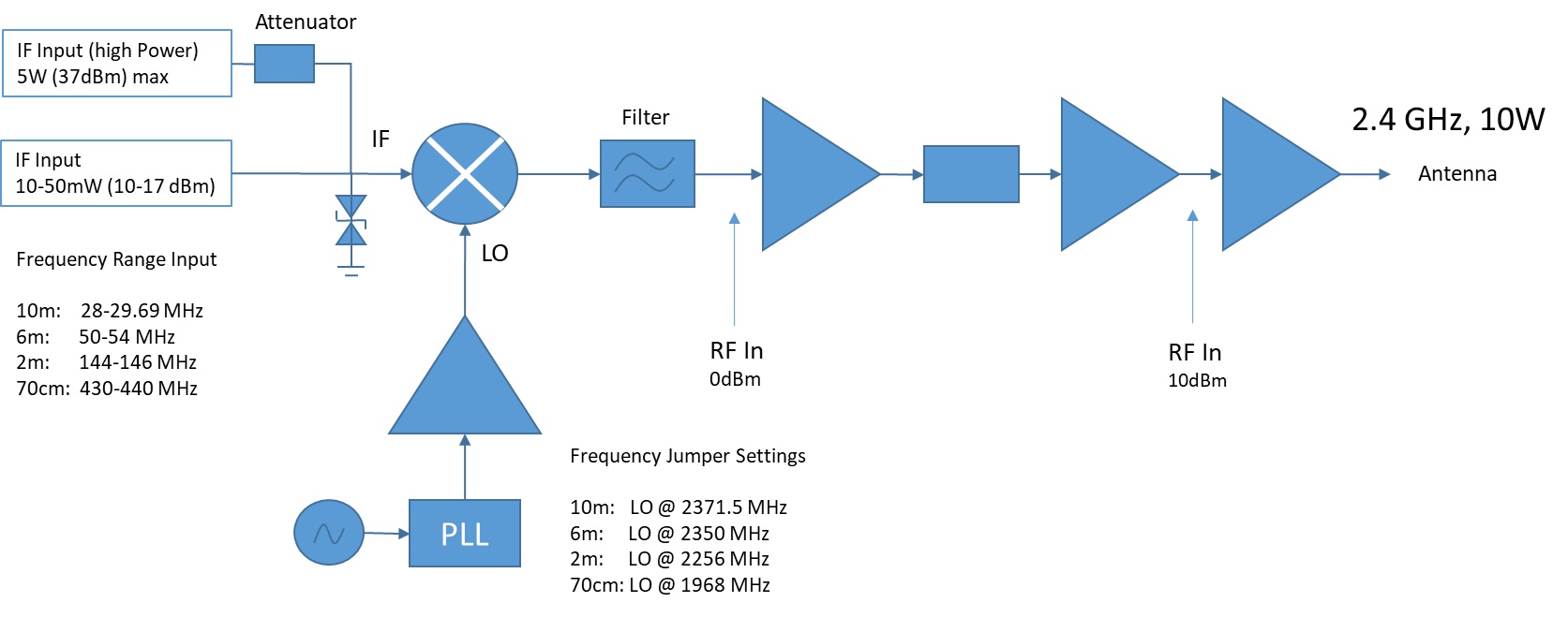 No review at the moment13cm 2.4GHz amplifier for QO-100 compatible with the use of a Adalm Pluto to be operational on the QO-100 satellite in SDR with a maximum power of 10W on the 13cm 2.4 GHz band.