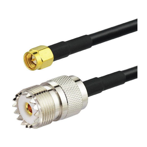 SMA Male to UHF Male coaxial cable with KSR195 low-loss 50 ohm coaxial cable for use from 0 to 6 GHz. Length: 1, 2, 5 or 10 metresConnector 1: SMA MaleConnector 2: UHF Male
