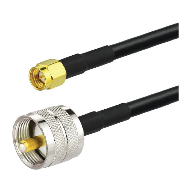 Read the 2 reviewsCoaxial cable with UHF Male - SMA Male connector (PL-259) with RG58 MIL-C-17 50 ohm coaxial cable for frequency use from 0 to 1000Mhz.