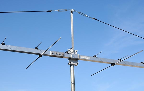 The best 2 meters and 70 cm dual-band low noise Yagi antenna 2m70cm37DX-2C, bracket, and guy rope view