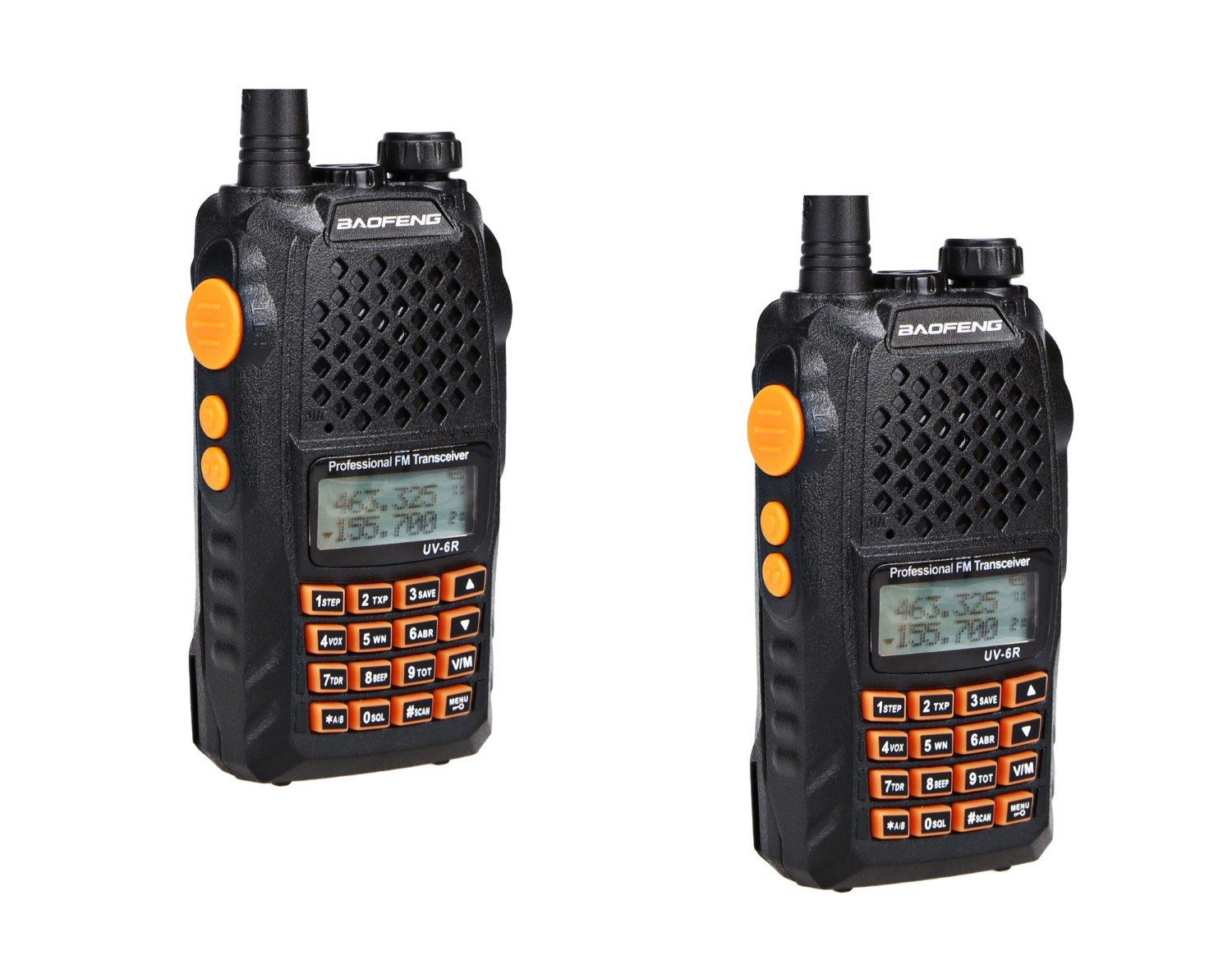 Comes complete with: 2 x UV-6R 5 Watt, 2 AC wall chargers 220V, 2 belt clips, 2 dual-band antennas, 2 hand microphone, 2 batteries 1800mAh, 2 micro-ears, manual in english, 1 USB programming cable.