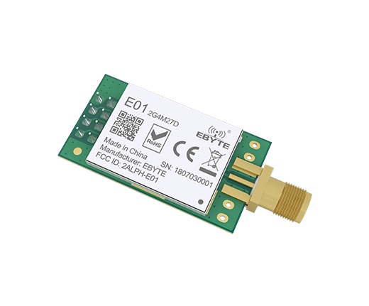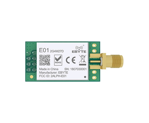 Delivered with: 1 RF transceiver module 2.4Ghz PCB EBYTE E01-2G4M27D.