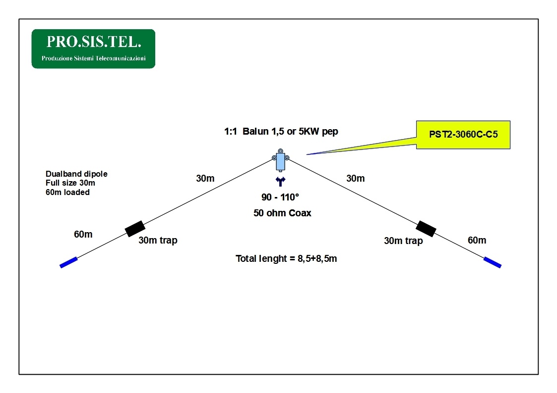 Loaded double band cable dipole for 30 and 60m...