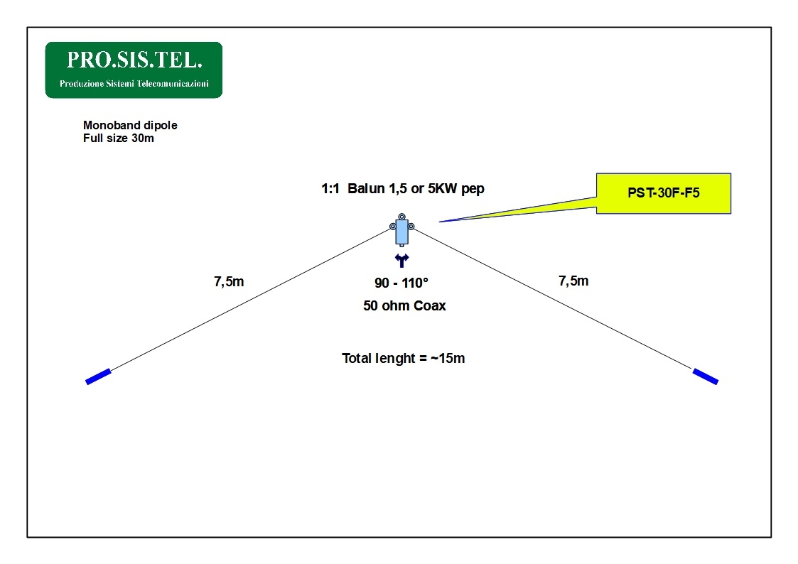 Wire dipole for 30 m approx. 7.5 m per arm...